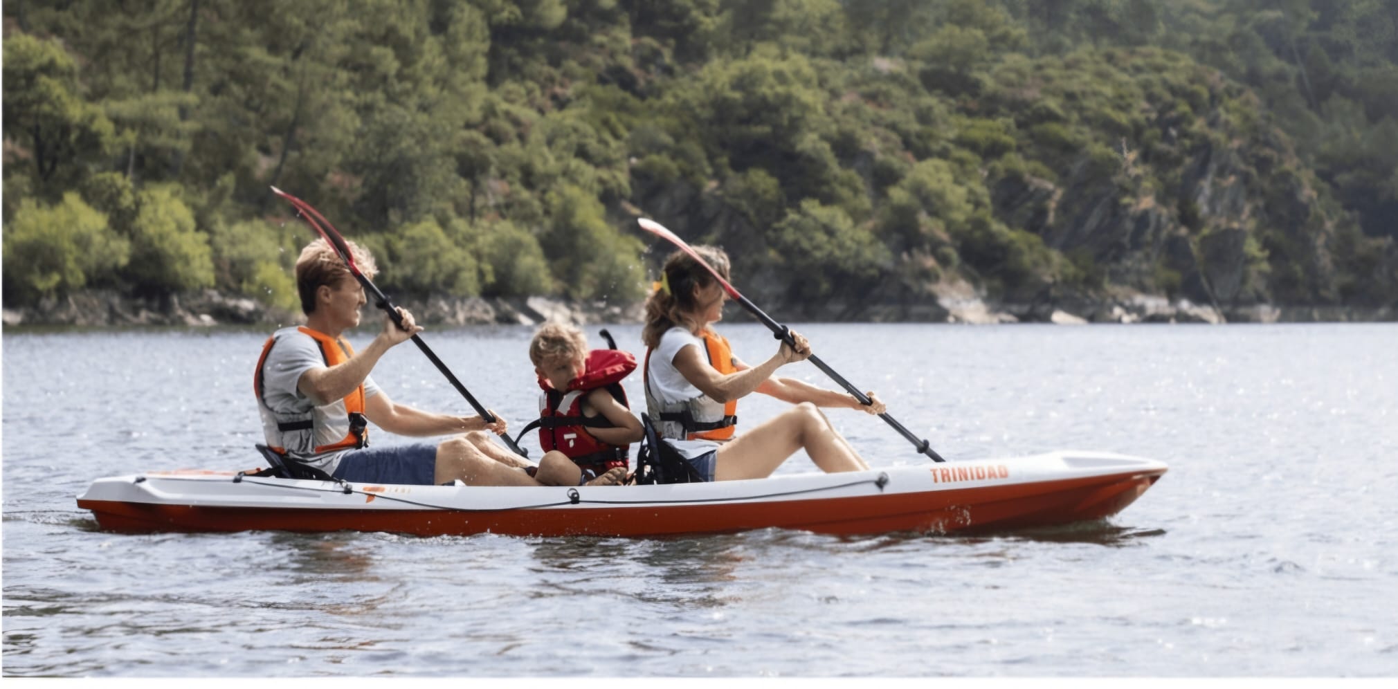 Tahé Trinidad-Kajaks bieten Platz für zwei Erwachsene + ein Kind oder sportliche Zweierbesetzungen.